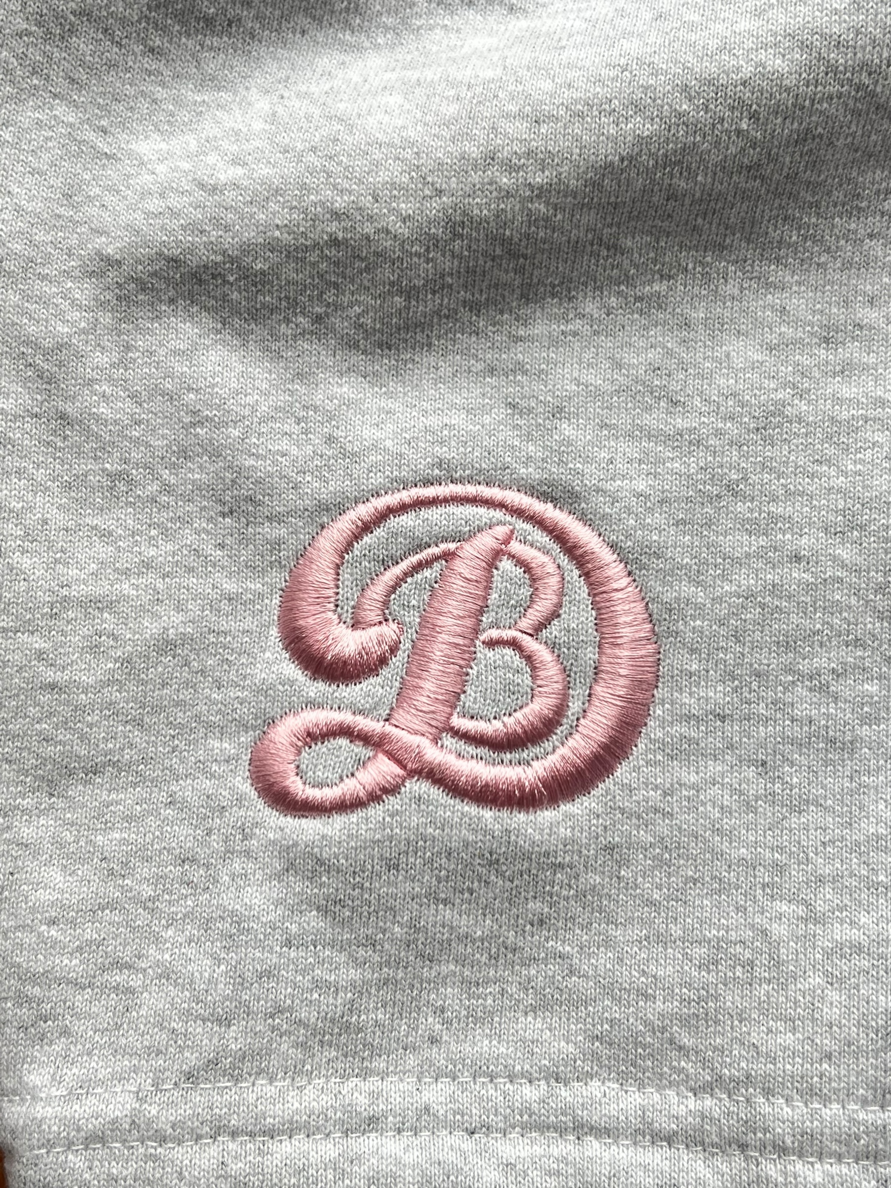 Finished in a clean heather grey with a subtle light pink DBL logo on the back leg — calm in look, relentless in message.